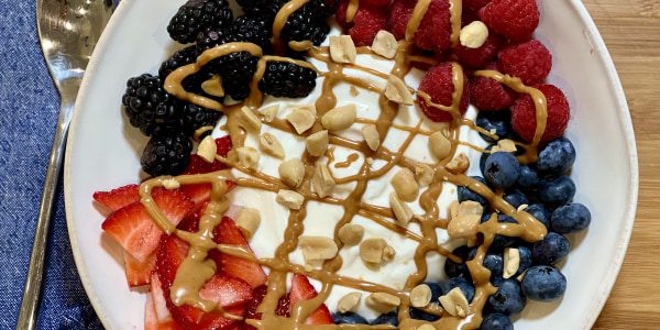 Сладкое угощение для начала дня? Да, пожалуйста! Эта миска выглядит декадентской, но содержит белок с греческим йогуртом, арахисовым маслом и измельченным арахисом. Ягоды добавляют вкусной смеси.